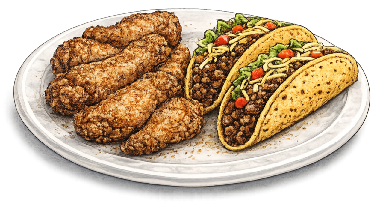 Chicken Strips – With Ranch dressing and french fries or veggie sticks. | $7.00